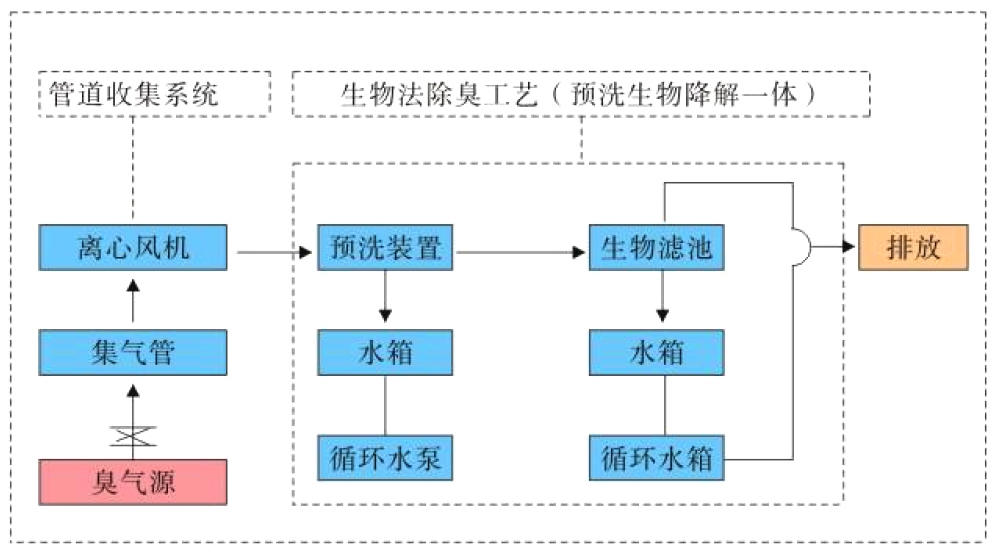 生物除臭可以表達為:污染物+O2→細胞代謝物+CO2+ H2O 污染物的轉化機理可用下圖表示: